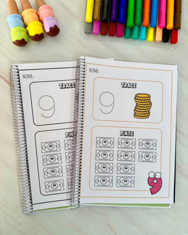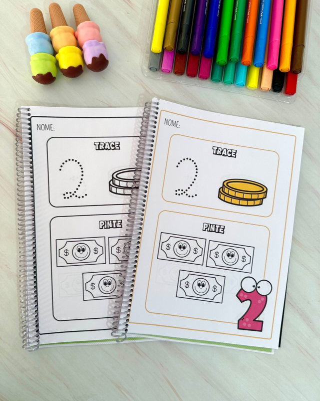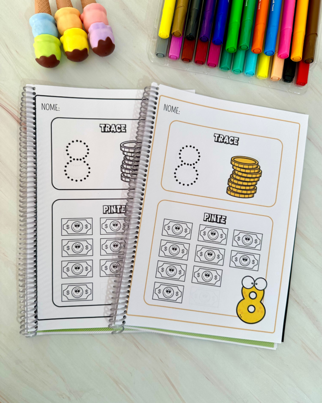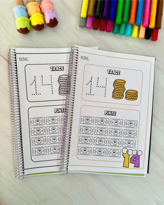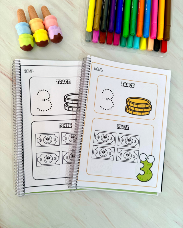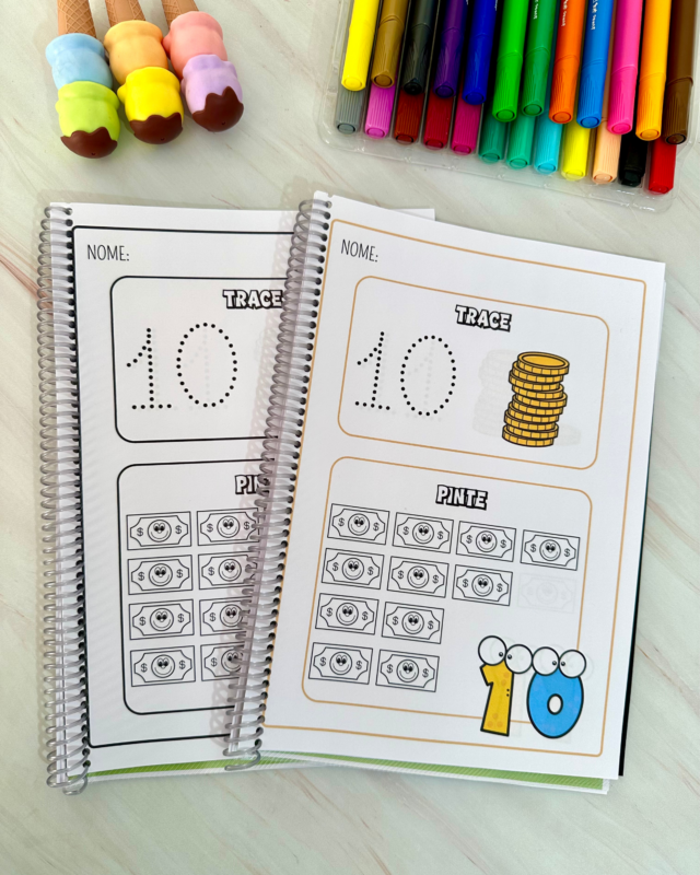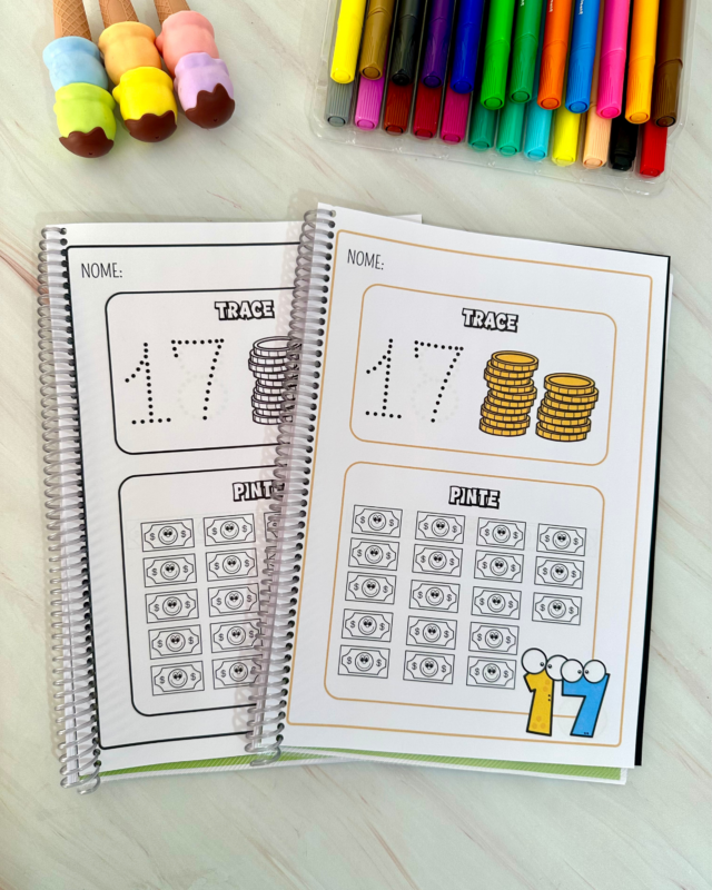 Nesta proposta, trabalhamos o traçado correto dos numerais e a correspondência número/quantidade, estimulando coordenação motora, atenção e reconhecimento numérico.