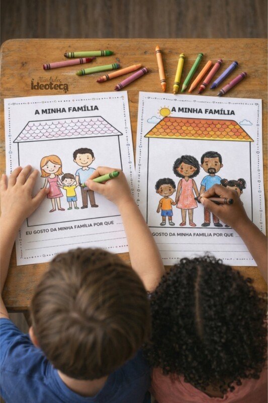 A atividade “A Minha Família” incentiva a criança a refletir e expressar seus sentimentos por meio da frase: