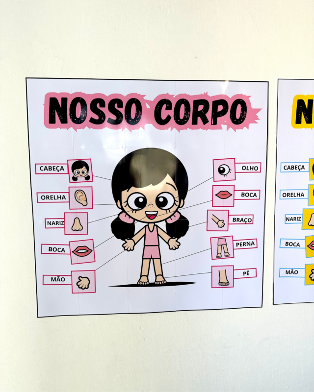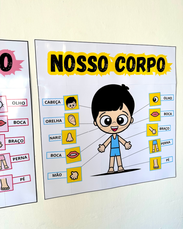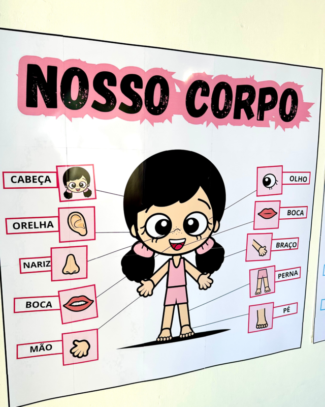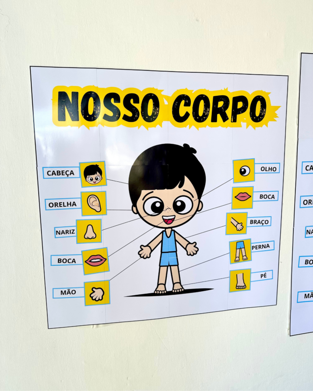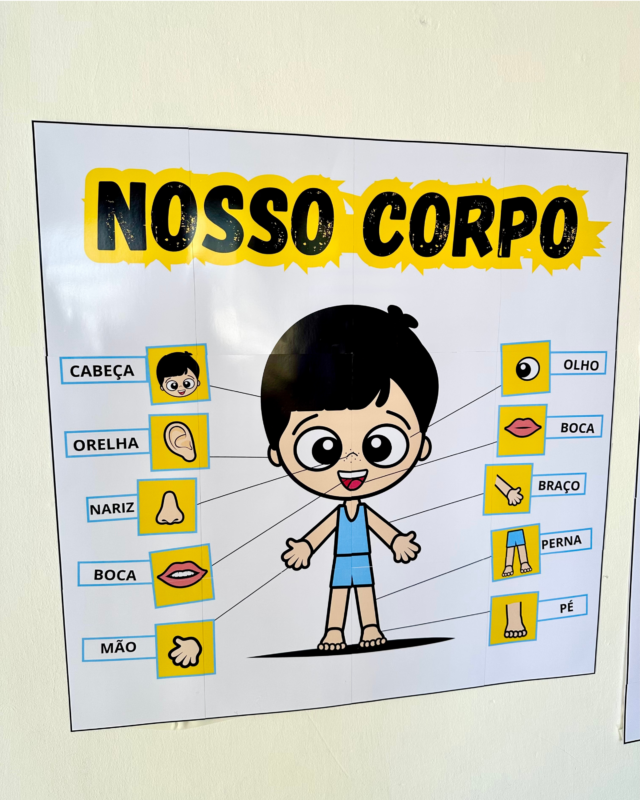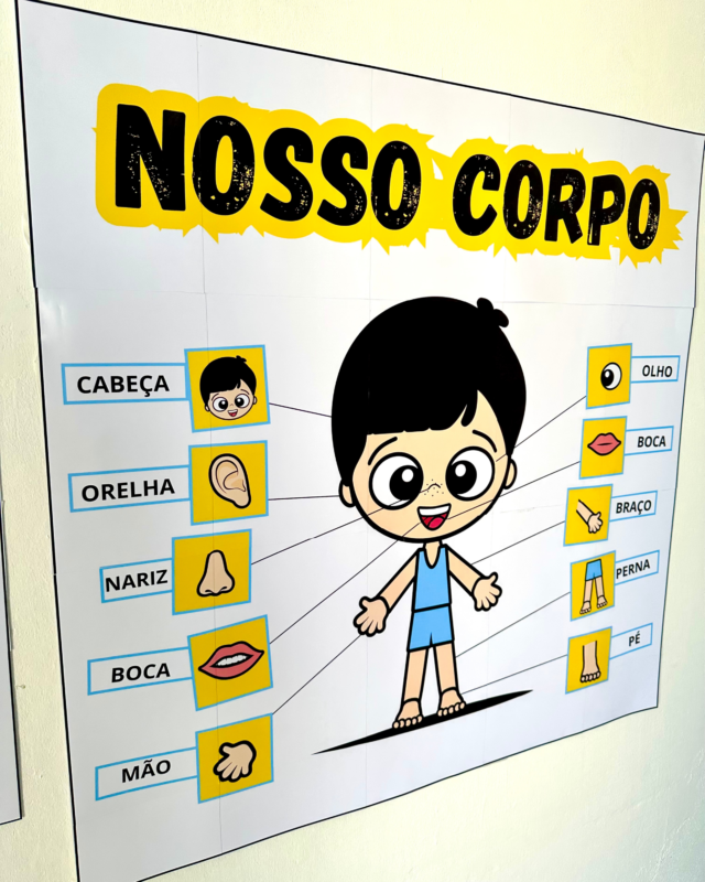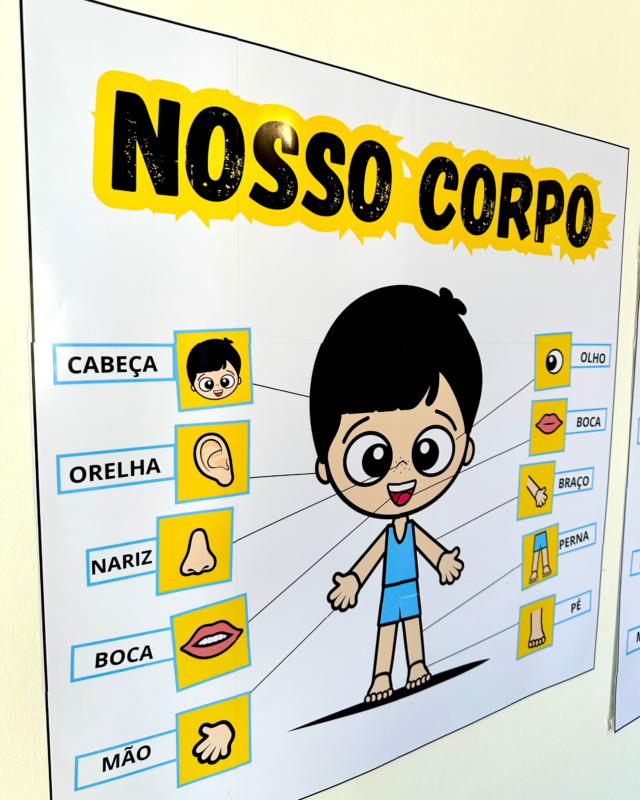 Cartaz educativo para trabalhar o Corpo Humano com crianças da Educação Infantil e das séries iniciais do Ensino Fundamental.